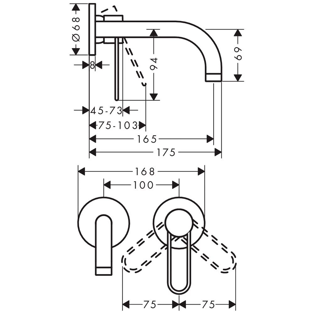 AXOR Uno Einhebel Waschtischmischer Unterputz Mit Bügelgriff Für Wandmontage, Ausladung 16,5 Cm