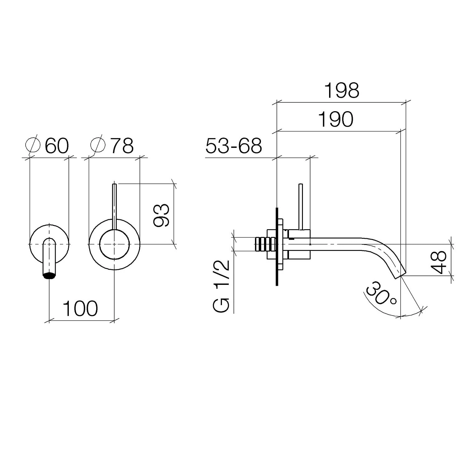 Eigenschaften: starrer Auslauf runder luftangereichrter Strahl Bohrungsdurchmesser Auslauf 3,7 cm Bohrungsdurchmesser Einhandbatterie 5,7 cm Rosette für Auslauf Ø 5,5 cm Rosette für Einhandbatterie Ø 7,8 cm Durchfluss max. 5,7 l/min bleifrei Positionierung des Mischers oben, links und rechts vom Auslauf möglich. Ohne UP-Körper! Bitte separat bestellen.