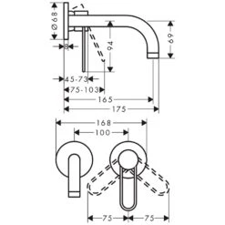 AXOR Uno Einhebel Waschtischmischer Unterputz Mit Bügelgriff Für Wandmontage, Ausladung 16,5 Cm