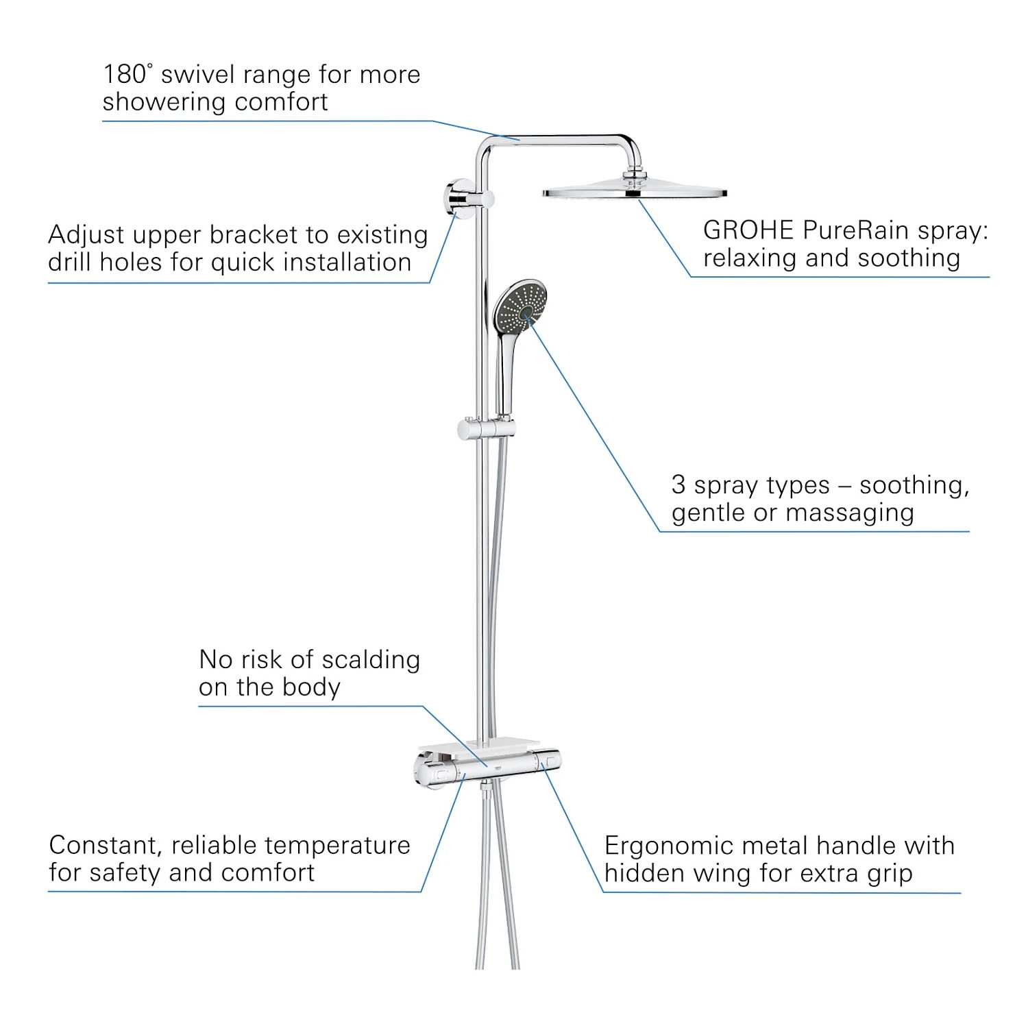 GROHE Vitalio System 310 Duschsystem Mit Thermostatbatterie Mit Ablage