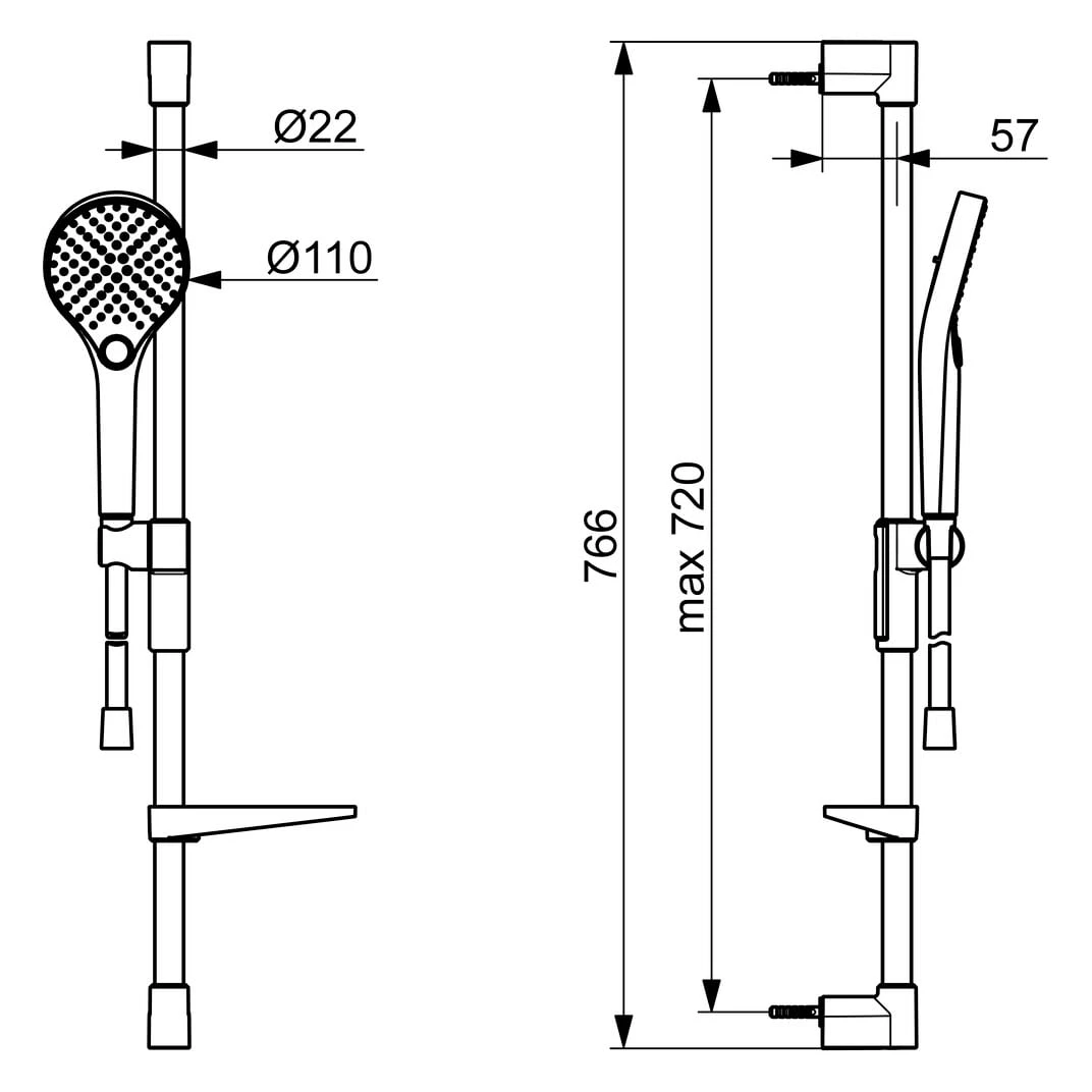 Eigenschaften: perfekte Ergänzung für jedes Badezimmer einfache und flexible Wandmontage enthält: Handbrause, Brausestange u. Seifenschale mit Anti-Kalk-Technik Brauseschlauch (Länge: 175 cm) mit Twist Guard und Verdrehschutz 3 Strahlarten: Normal-, Massage-, u. Regenstrahl kürzbare Brausestange Schlauchdurchführung und drehbare Eigenschaften unverzichtbares Produkt für das tägliche Badezimmer-Ritual Handbrause: Ø 11 cm Arbeitsdruck: 50 – 500 kPa Warmwasser: max. +65°C EN Standard: EN1112 Geräuschklasse: I (ISO 3822)