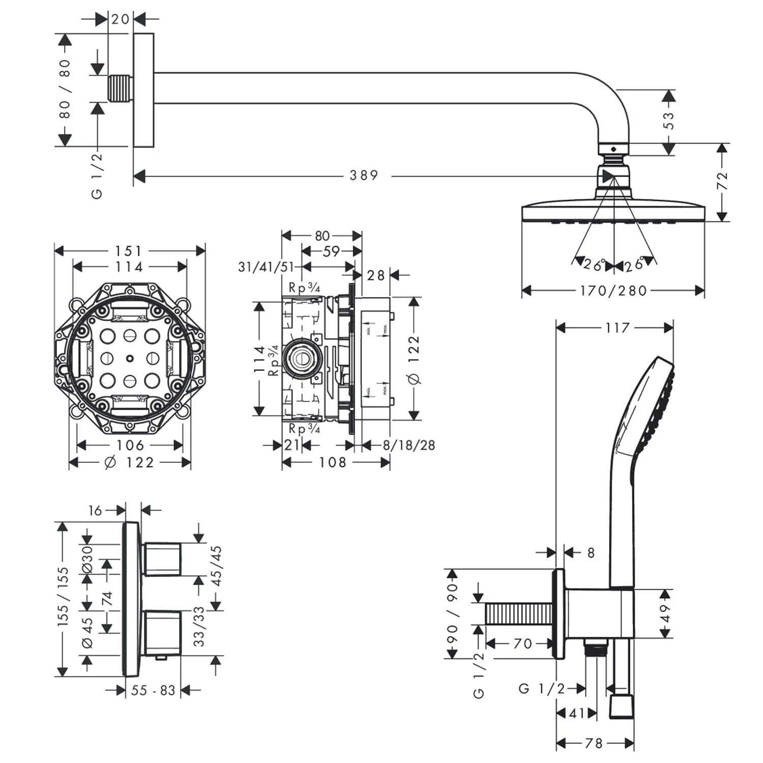 Hansgrohe Croma E Brausesystem 280, 1 Strahlart Mit Ecostat E