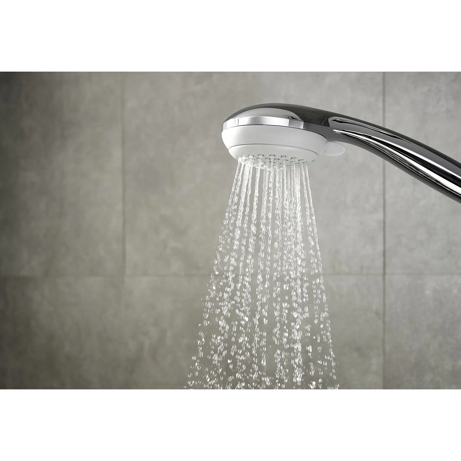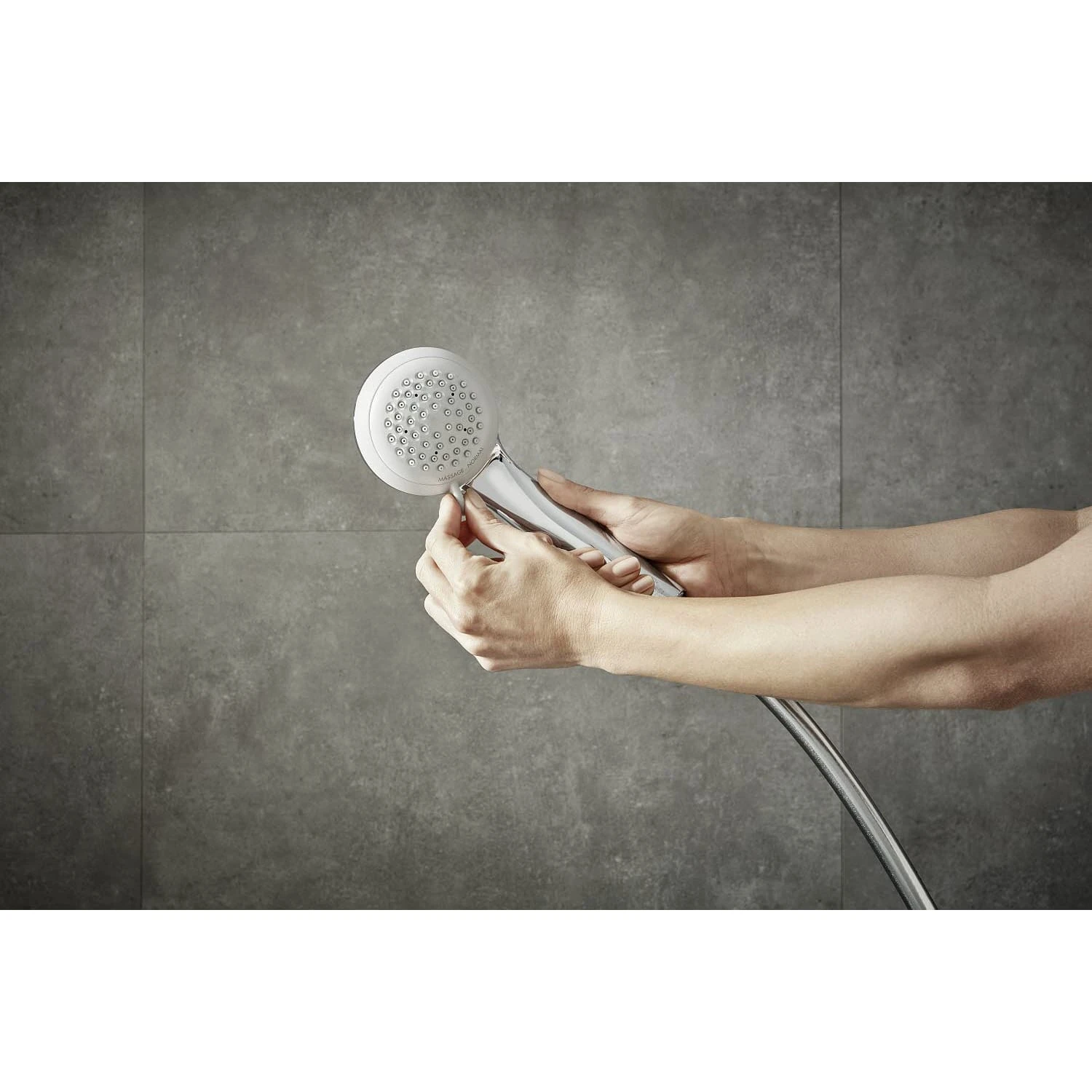 Eigenschaften: Brausekopfgröße: 85 mm Strahlartenumstellung durch drehbare Strahlscheibe Strahlart: Normalstrahl, Vario Strahl Durchflussmenge bei 3 bar: 17 l/min ausspülbares Schmutzfangsieb Anschlussgewinde G ½ Anschlussgröße: DN15 für Durchlauferhitzer geeignet Lieferumfang: Handbrause, Siebdichtung, Montageanleitung