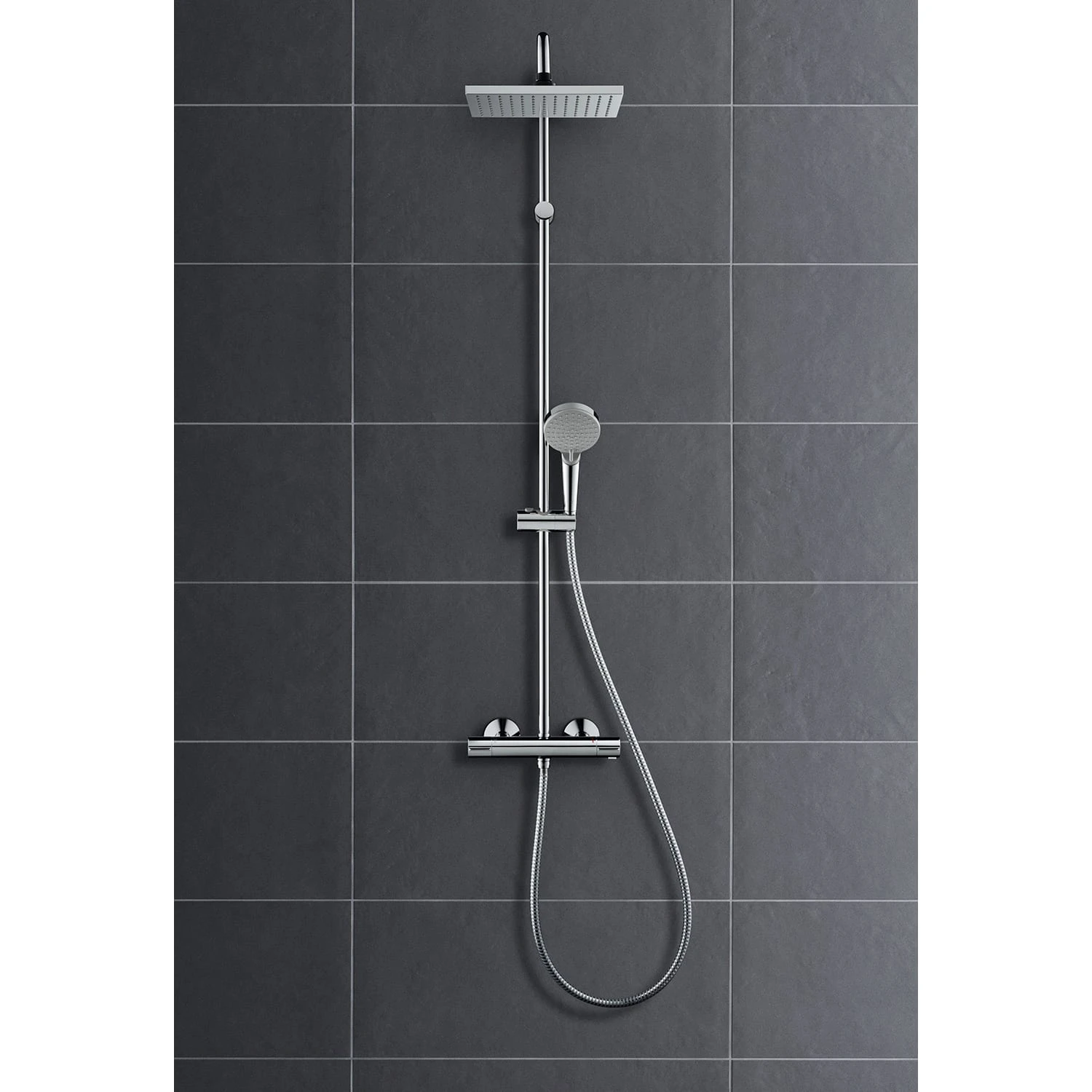 Eigenschaften: starkes Design fürs kleine Budget: der geometrisch gestaltete Vernis Shape Duschkopf bringt Komfort und Wasserspaß ins Bad besteht aus: Kopfbrause, Handbrause, Brausethermostat, Brauseschlauch, Handbrausehalterung Duschvergnügen: die 23 x 17 cm große Kopfbrause verwöhnt mit gleichmäßigem, üppigem Wasserstrom (XXL-Performance) mehr Komfort: das Thermostat hält die eingestellte Wunschtemperatur und schützt zuverlässig vor zu heißem oder zu kaltem Wasser großartiges Wasservergnügen: die Kopfbrause liefert max. 12 l/min, die Handbrause max. 15,9 l/min (je bei 3 bar) Duschkopf inklusive: die Handbrause Vernis Vario verwöhnt mit einem 10 cm großen Duschkopf und 2 Strahlarten (Rain, IntenseRain) schnelle Strahlumstellung: direkt am Duschkopf durch Drehen der Strahlscheibe Komfort auf ganzer Länge: mit 160 cm langem Duschschlauch für große Bewegungsfreiheit griffbereit: mit dem praktischen Brausehalter ist der Duschkopf stets aufgeräumt und bequem erreichbar länger wie neu: Kalk lässt sich einfach von den Silikondüsen am Duschkopf abwischen (QuickClean) Lieferumfang: Showerpipe mit Brausethermostat, Rosetten, S-Anschlüsse, Befestigungsmaterial, Montageanleitung in allen Bestandteilen sind Premium-Materialien verbaut – für mehr Sicherheit und Nachhaltigkeit im Haushalt hansgrohe seit 1901 – die Premium-Marke für zuverlässige Bad- und Küchenprodukte 5 Jahre freiwillige Herstellergarantie auf ein Produkt, das nach höchsten Qualitätsstandards gefertigt wurde