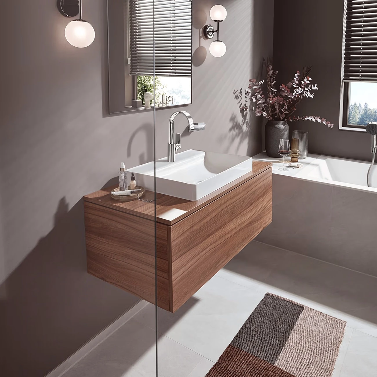 Eigenschaften: elegant in Form: Armaturen der Linie Vivenis stellen den Menschen in den Mittelpunkt und erzeugen Wohlfühlmomente wie ein kleiner Wasserfall schafft der extra breite Wasserstrahl mit weichen, vollen Tropfen Wohlbefinden diese Armatur reichert Wasser mit Luft an – für einen vollen Wasserstrahl, der weniger spritzt (AirPower) mit Schwenkauslauf (120° drehbar) für komfortables Haarewaschen oder Befüllen von Gefäßen am Waschbecken spart Geld, schont die Umwelt: die Durchflussmenge wird auch bei hohem Wasserdruck auf max. 4,5 l/min begrenzt (EcoSmart) einfache Installation: die Armatur wird über flexible Anschlussschläuche (G 3/8) mit den Wasseranschlüssen verbunden (Größe: DN15) auch nach häufiger Benutzung hat der Griff kein Spiel und steuert das hochwertige Keramikmischsystem von hansgrohe bewährt: die mitgelieferte Zugstangen-Ablaufgarnitur (?) Zugstangen-Ablaufgarnitur Excenter-Garnitur ist der Ablauf unten im Waschbecken. lässt sich bequem mit einer Hand öffnen und schließen besonders sicher: die einstellbare Temperaturbegrenzung schützt vor zu heißem Wasser vielseitig einsetzbar: diese Armatur ist auch für Durchlauferhitzer geeignet mehr Bewegungsfreiheit: der Abstand zwischen Auslauf und Becken bietet Raum für eine komfortable Nutzung (ComfortZone 210) Lieferumfang: Einhebel-Waschtischmischer, Montageschlüssel, Anschlussschläuche, Schaftbefestigung, Montageanleitung in allen Bestandteilen sind Premium-Materialien verbaut – für mehr Sicherheit und Nachhaltigkeit im Haushalt hansgrohe seit 1901 – die Premium-Marke für zuverlässige Bad- und Küchenprodukte 5 Jahre freiwillige Herstellergarantie auf ein Produkt, das nach höchsten Qualitätsstandards gefertigt wurde