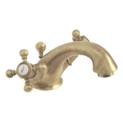 Eigenschaften: Kreuzgriff-Betätigungen Griffplättchenbezeichnung chaud/froid Zugstangen-Ablaufgarnitur (?) Zugstangen-Ablaufgarnitur Excenter-Garnitur ist der Ablauf unten im Waschbecken. 1 1/4″ starrer Auslauf Schnellschluss-Keramikventile 90° Neoperl-Sparperlator LOGIC-FiX-Befestigung Anschlussschläuche DVGW zertifiziert Oberfläche: bronze