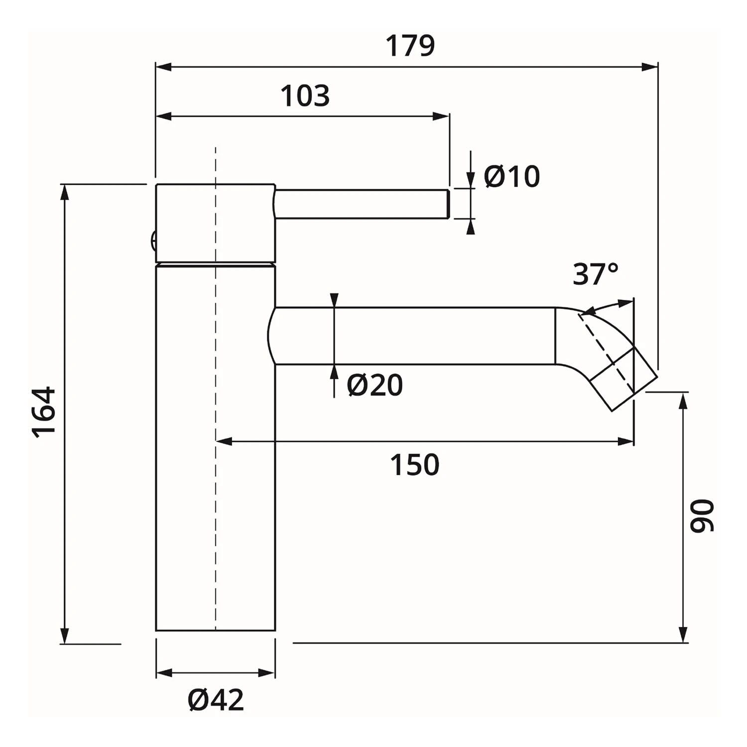 Herzbach DEEP GREY Waschtisch-Einlochbatterie Slim M-Size Ohne Ablaufgarnitur, Griff Seitlich