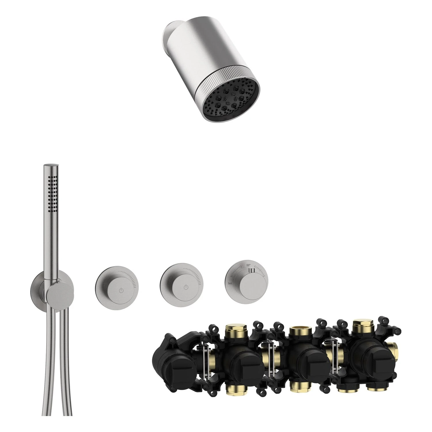 Herzbach MODUL7 IX Duschsystem P-SP3 Mit PUSH Thermostat Und Kopfbrause SPOT