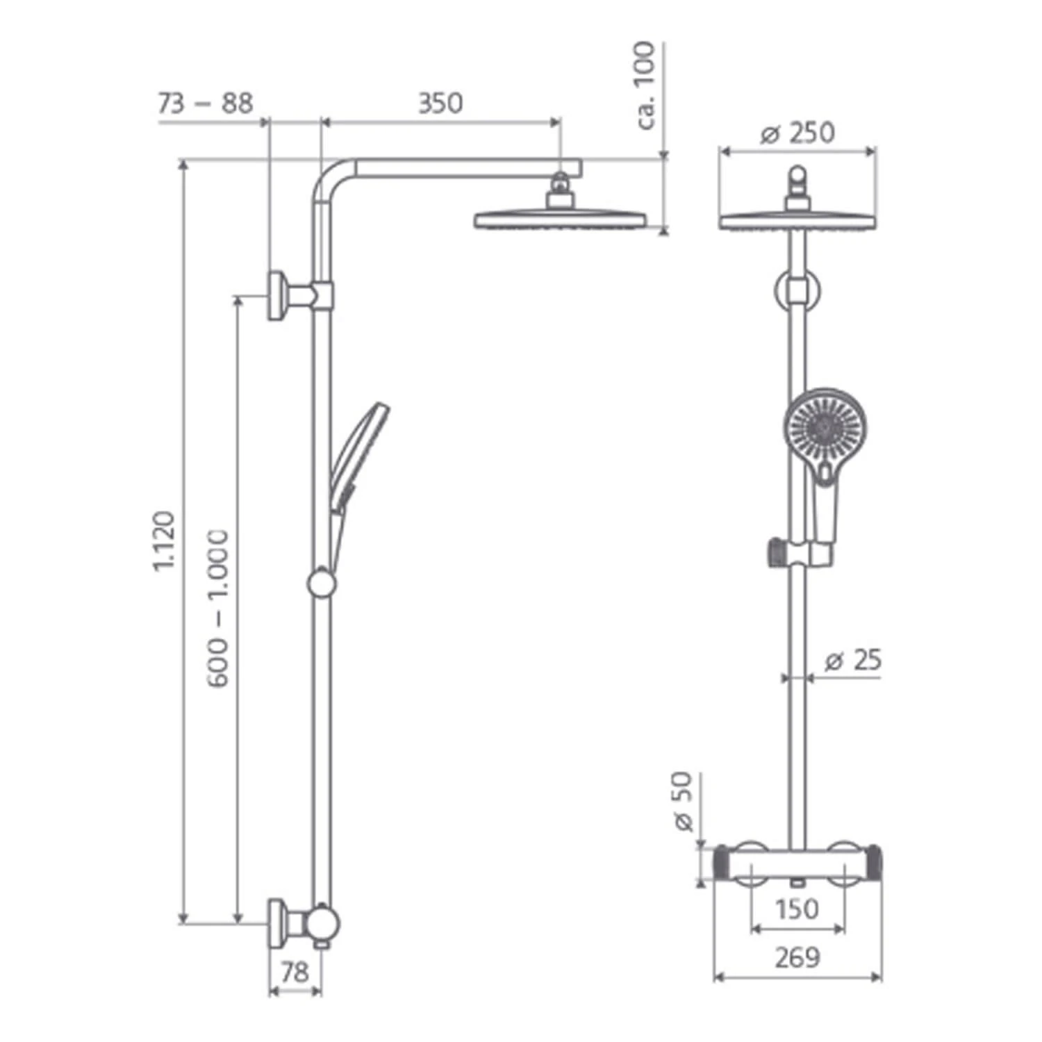 HSK AquaXPro 100 Thermostat Mit Shower-Set, 25 Cm