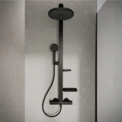 Ideal Standard Alu+ Duschsystem Mit Ceratherm Brausethermostat, 2 Ablagen, 2-Funktions-Handbrause Und 2-Funktions-Kopfbrause
