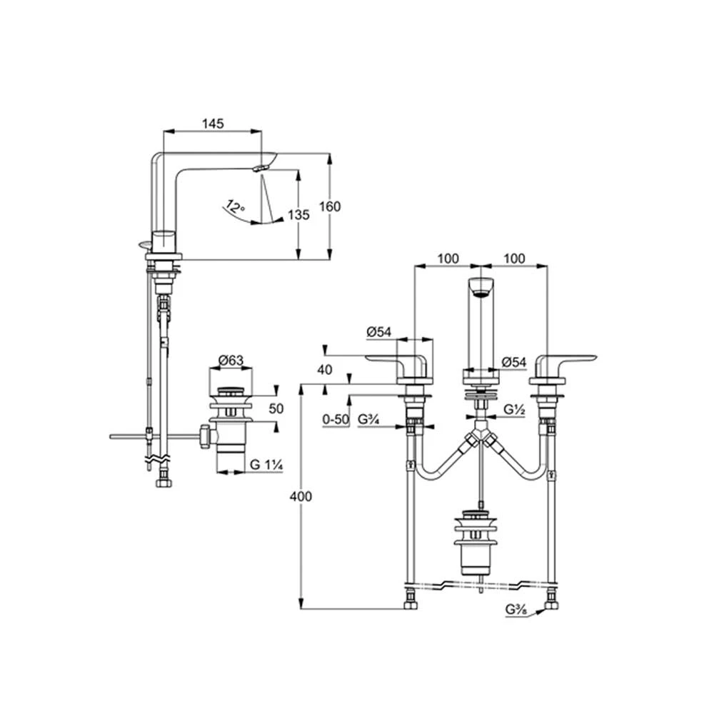 Eigenschaften: geschlossener Hebel Dreiloch-Montage Durchflussmenge 6 l/min bei 3 bar PCA s-pointer Luftsprudler M 24 x 1 fester Auslauf Keramik-Oberteil 90° Schnell-Montagesystem flexible Anschlüsse G 1/2