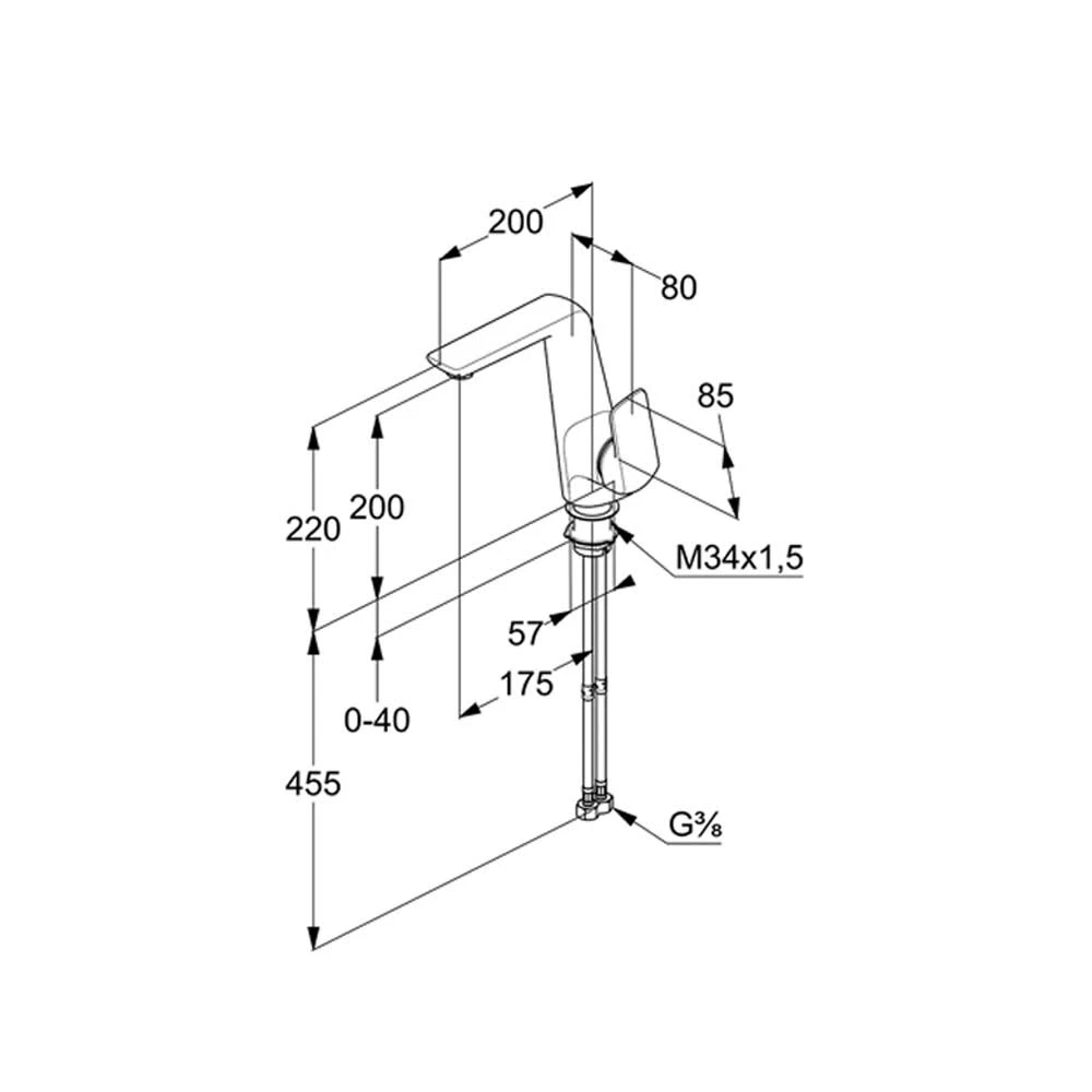 Eigenschaften: Waschtisch-Einhandmischer DN 15 geschlossener Hebel Einlochmontage Durchflussmenge 6 l/min bei 3 bar PCA s-pointer Luftsprudler M 24 x 1 Keramik-Kartusche mit Heißwasserbegrenzung ohne Ablaufgarnitur flexible Anschlüsse G 3/8