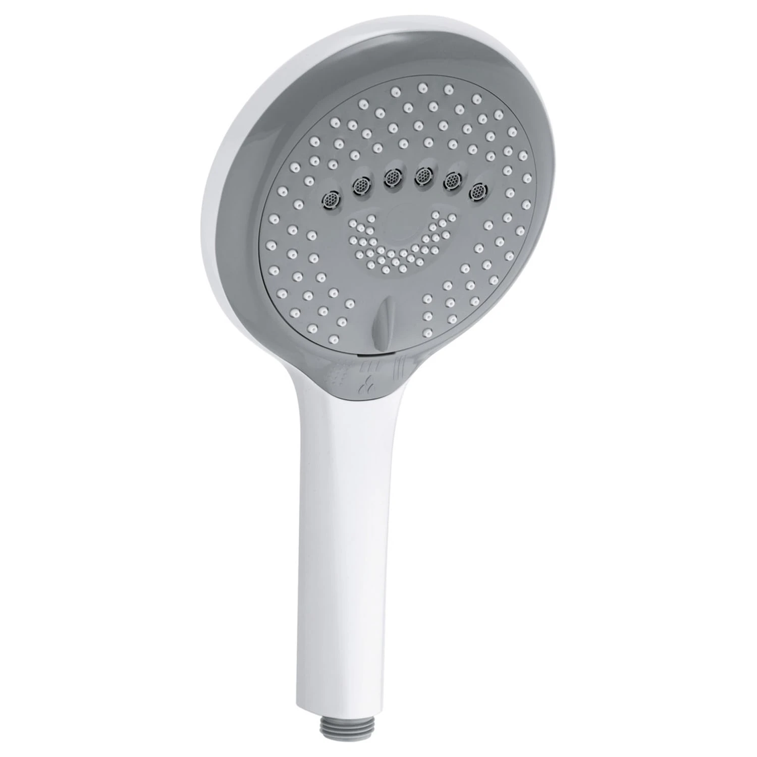 Eigenschaften: umstellbar auf drei Strahlarten: Booster, Smooth und Volumen Durchflussmenge 19 l/min (Booster) / 11 l/min (Smooth) / 26 l/min (Volumen) bei 3 bar mit Kalk-Schnellreinigung mit Entleerungsfunktion Anschluss G 1/2