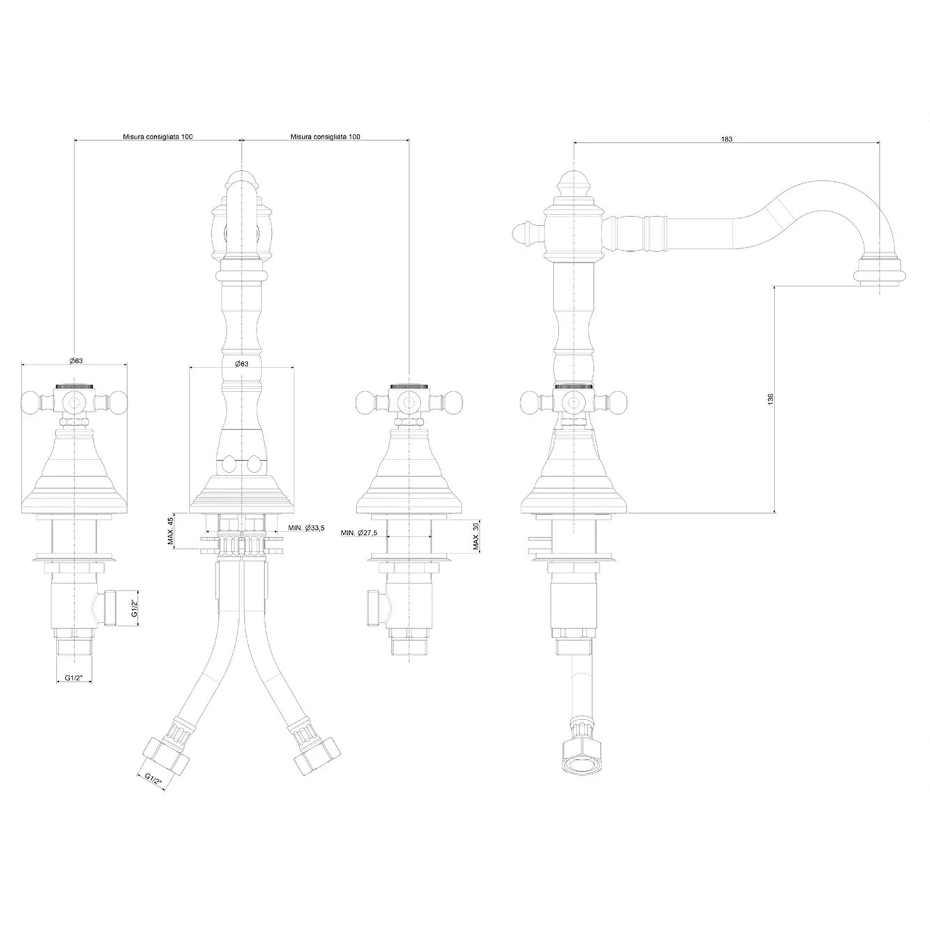 Kronenbach IOTA 2.0 Dreiloch-Waschtischarmatur Mit Ablaufgarnitur