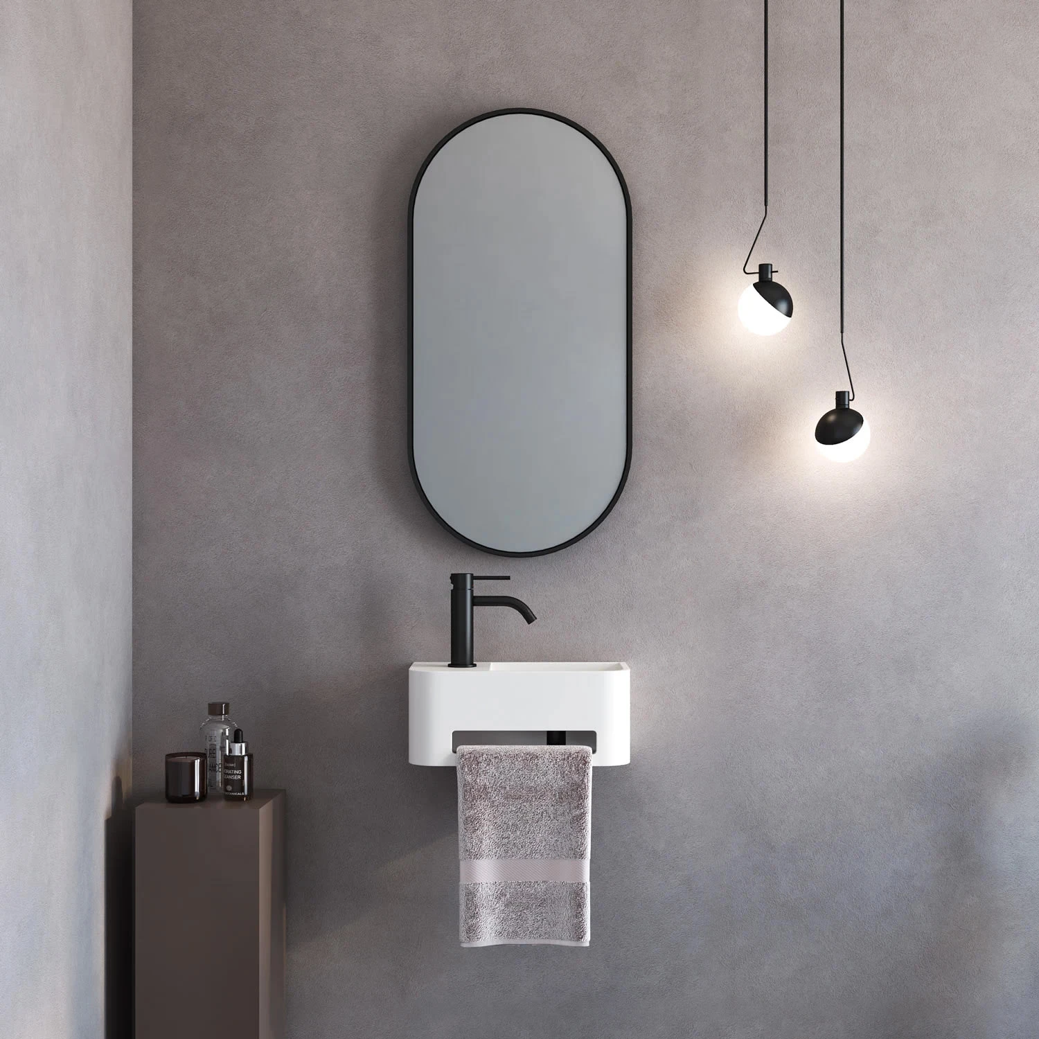 Herzbach DEEP GREY Waschtisch-Einlochbatterie Slim M-Size Ohne Ablaufgarnitur, Griff Seitlich