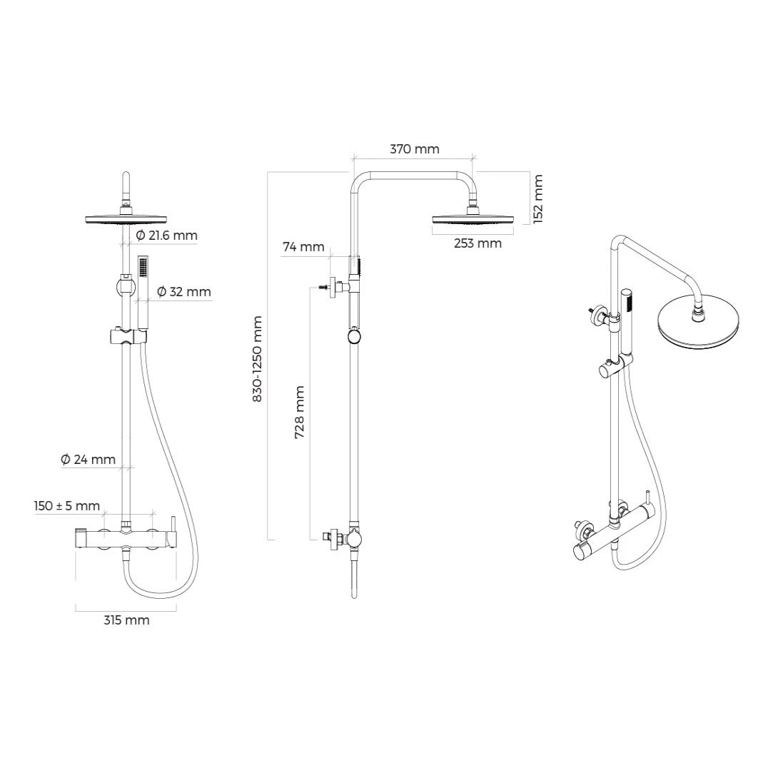 Eigenschaften: Armatur aus Messing mit Umschalter für Kopf-/ Stabhandbrause Stichmaß 15 cm Stabhandbrause mit 1 Strahlart, Ø 3,2 cm Kopfbrause mit 1 Strahlart, Ø 25,3 cm Brausearm mit Ausladung 37 cm inkl. Brauseschlauch und Duschstange