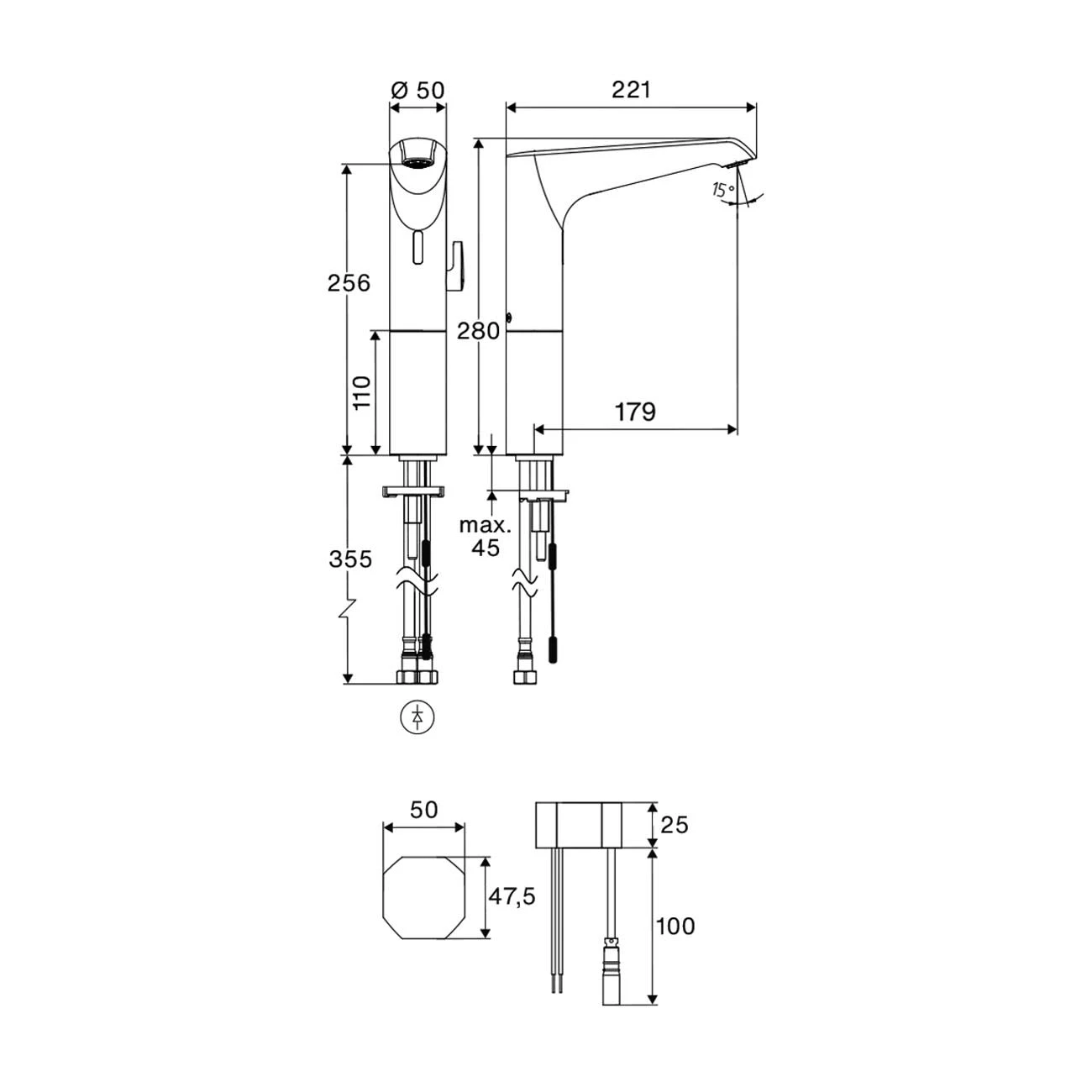Schell XERIS E² Elektronische Waschtisch-Armatur Mit Unterputz-Netzteil, Hochdruck-Mischwasser, L