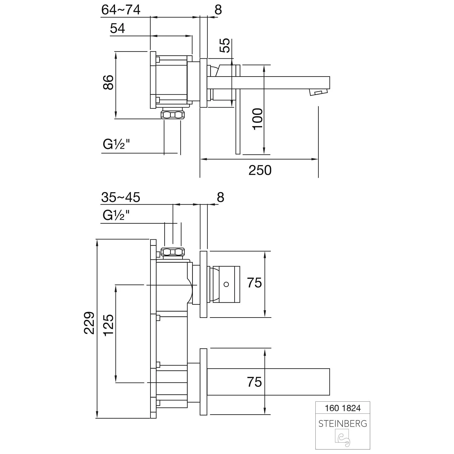 Steinberg Serie 160 Wand-Waschtisch Einhebelmischer Ausladung 25 Cm