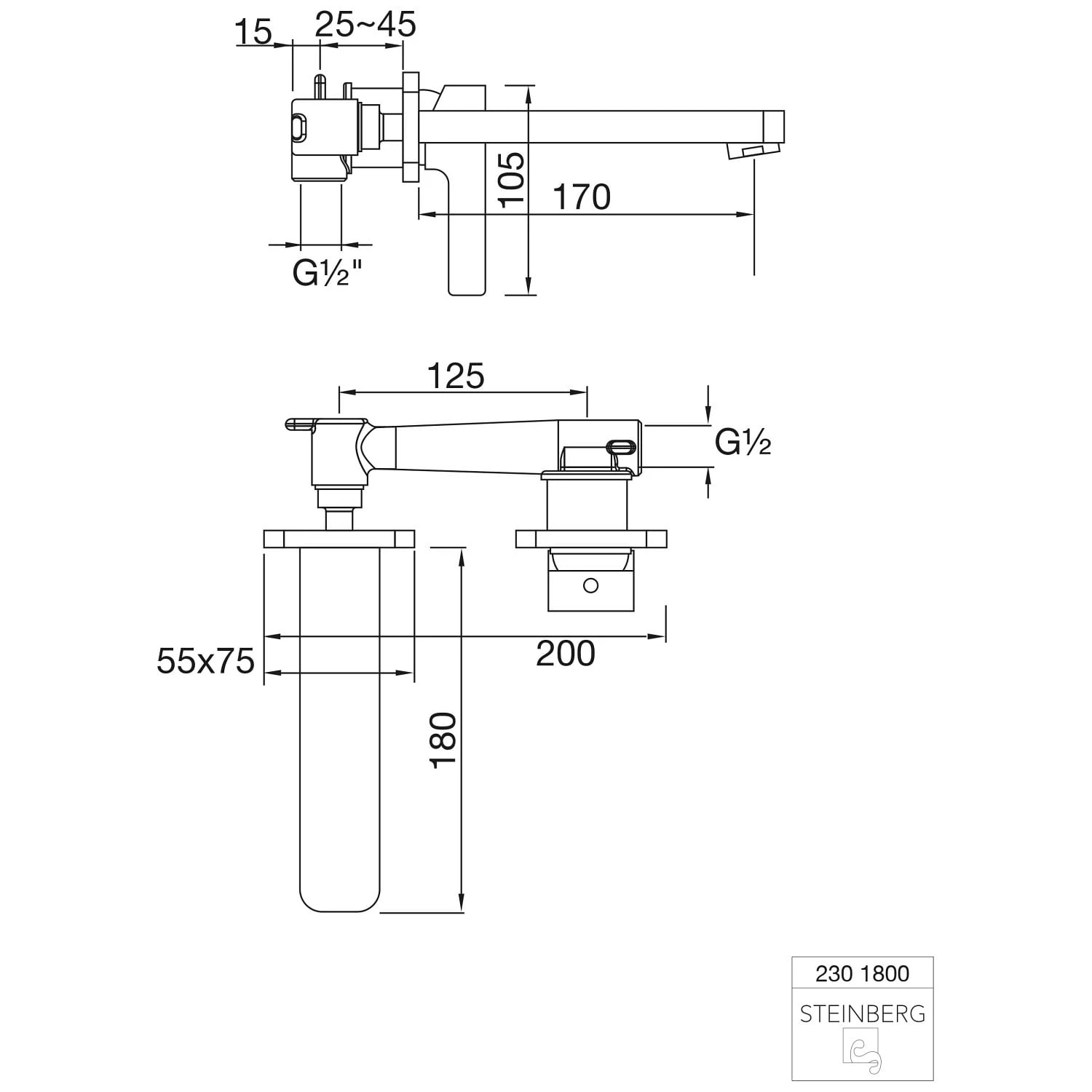 Steinberg Serie 230 Wand-Einhebelmischbatterie Ausladung 17,5 Cm