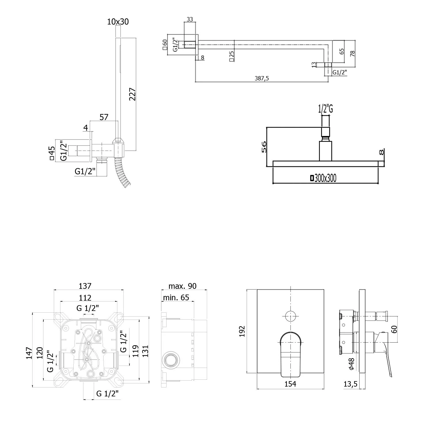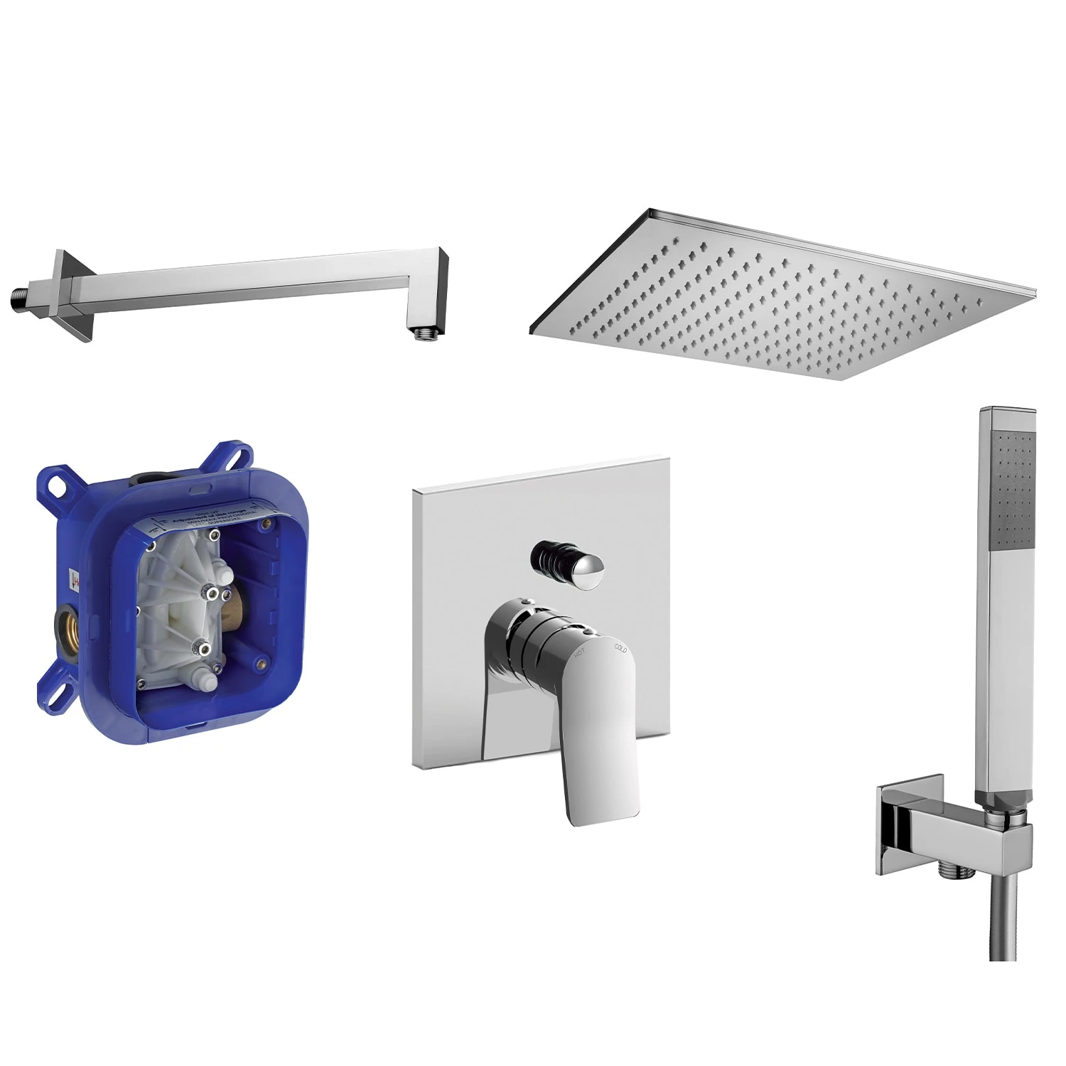 bestehend aus: 1 x Art. 60013CRST: Steinkamp Value Unterputz-Wannen-Brausearmatur mit Umstellung Kopf-, Handbrause 1 x Art. 60011CRST: Steinkamp P-Box Universal Grundkörper Anschlüsse 4 x 1/2″, Einbautiefe min. 6,5 cm Einbautiefe max. 9 cm 1 x Art. 66019CRST: Steinkamp Brausearm für Wandmontage eckig 40 cm Anschluss 1/2″ 1 x Art. 66007CRST: Steinkamp Wandanschlussbogen mit Brausehalter eckig mit integr. Brausenhalter, Anschluss 1/2″ 1 x Art. 66028CRST: Steinkamp Kopfbrause 30 x 30 cm Edelstahl mit Kugelgelenk mit Easy Clean Gummidüsen Anschluss 1/2″ 1 x Art. 66008AGST: Steinkamp Brausenschlauch 150 cm mit 1/2″ Drehkonus 1 x Art. 66016CRST: Steinkamp Stabhandbrause eckig mit Easy Clean Gummidüsen Anschluss 1/2″