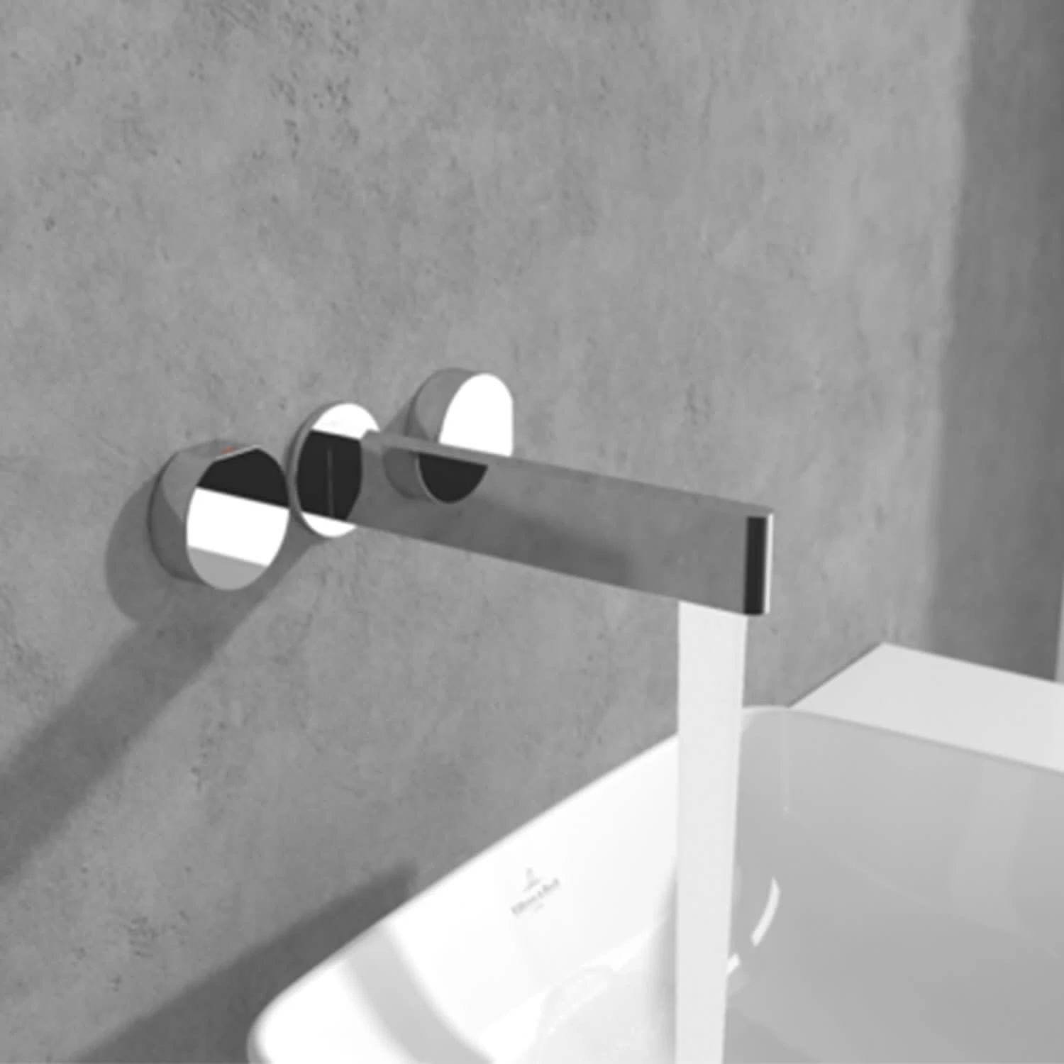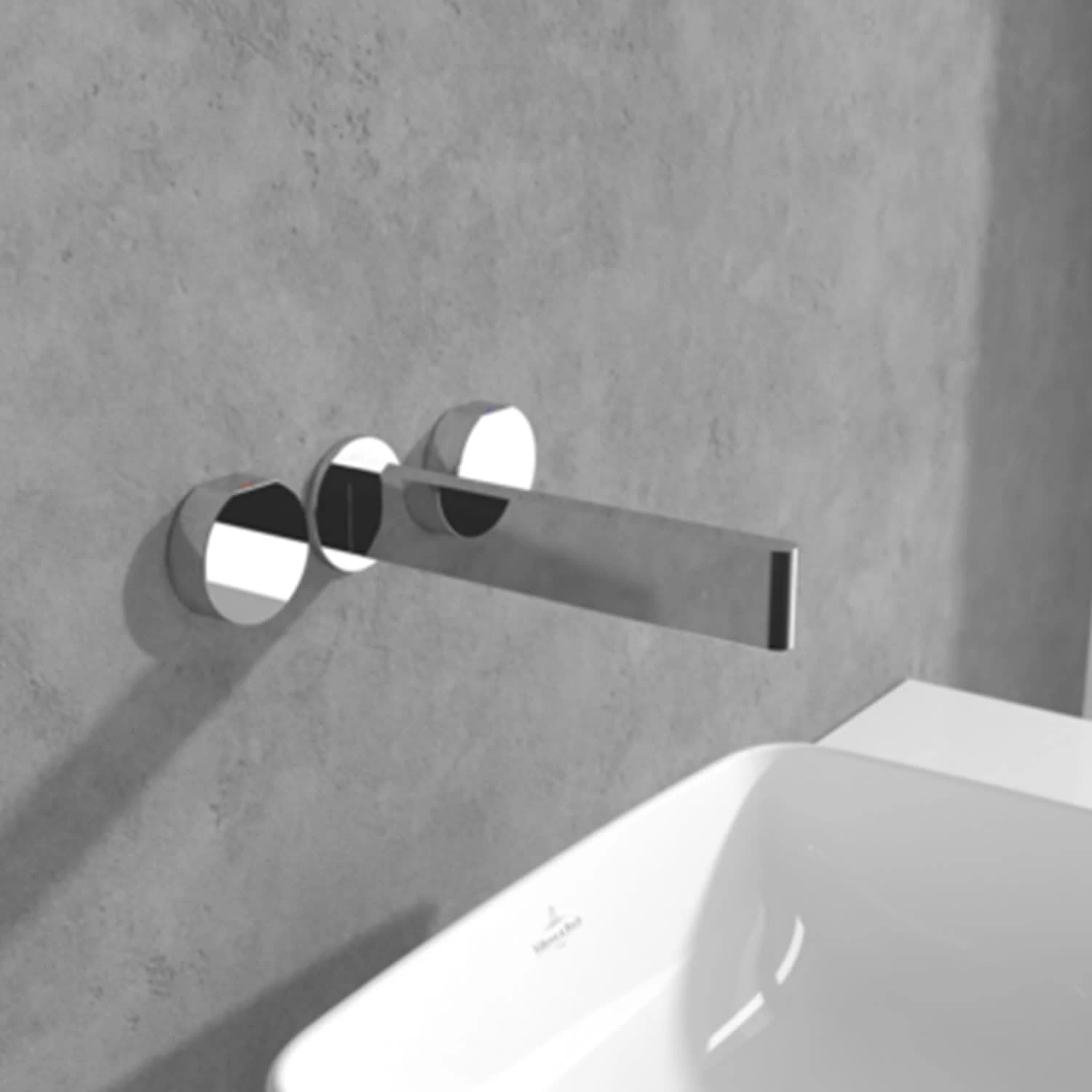 Das Villeroy & Boch Waschtischauslauf-Set der Kollektion Dawn verleiht dem Badezimmer einen frischen, einzigartigen Touch. Es besteht aus Wandauslauf und zwei dezenten Griffen aus Messing der höchsten Qualitätsstufe. Die Komponenten können leicht an der Wand montiert werden. Der optisch nicht sichtbare Strahlregler am schmalen Auslauf ermöglicht einen Mix aus Wasser und Luft und macht den Strahl so besonders voll und angenehm auf der Haut. Er begrenzt außerdem den Wasserfluss, sodass eine Menge Wasser eingespart werden kann, ohne dabei an Leistung zu verlieren. Über die einzelnen Griffe können per Dreh Wassertemperatur und -menge gesteuert werden. Eigenschaften: Wandmontage Ausladung: 19,6 cm Material: Messing Durchflussmenge: 9,2 l/min. Oberfläche glänzend und pflegeleicht angenehme Strahlstärke durch Luftzugabe – auch bei sparsamen Wassereinsatz (AirPlus) umweltfreundliche Wasserbegrenzung auf maximal 5 l/min – ohne Leistungsverlust (AquaSmart) schnelle und einfache Installation dank Fixierungssystem mit hochwertigen und standardisierten Komponenten Den erforderlichen Einbaukörper TVP00000301061 bitte separat bestellen!