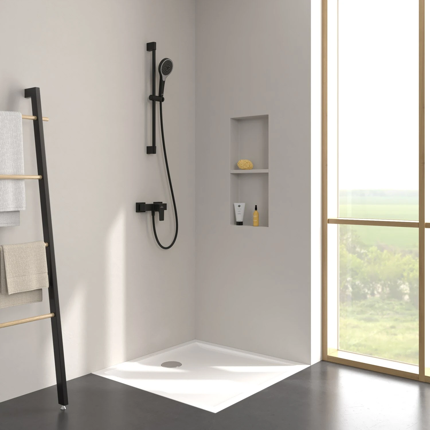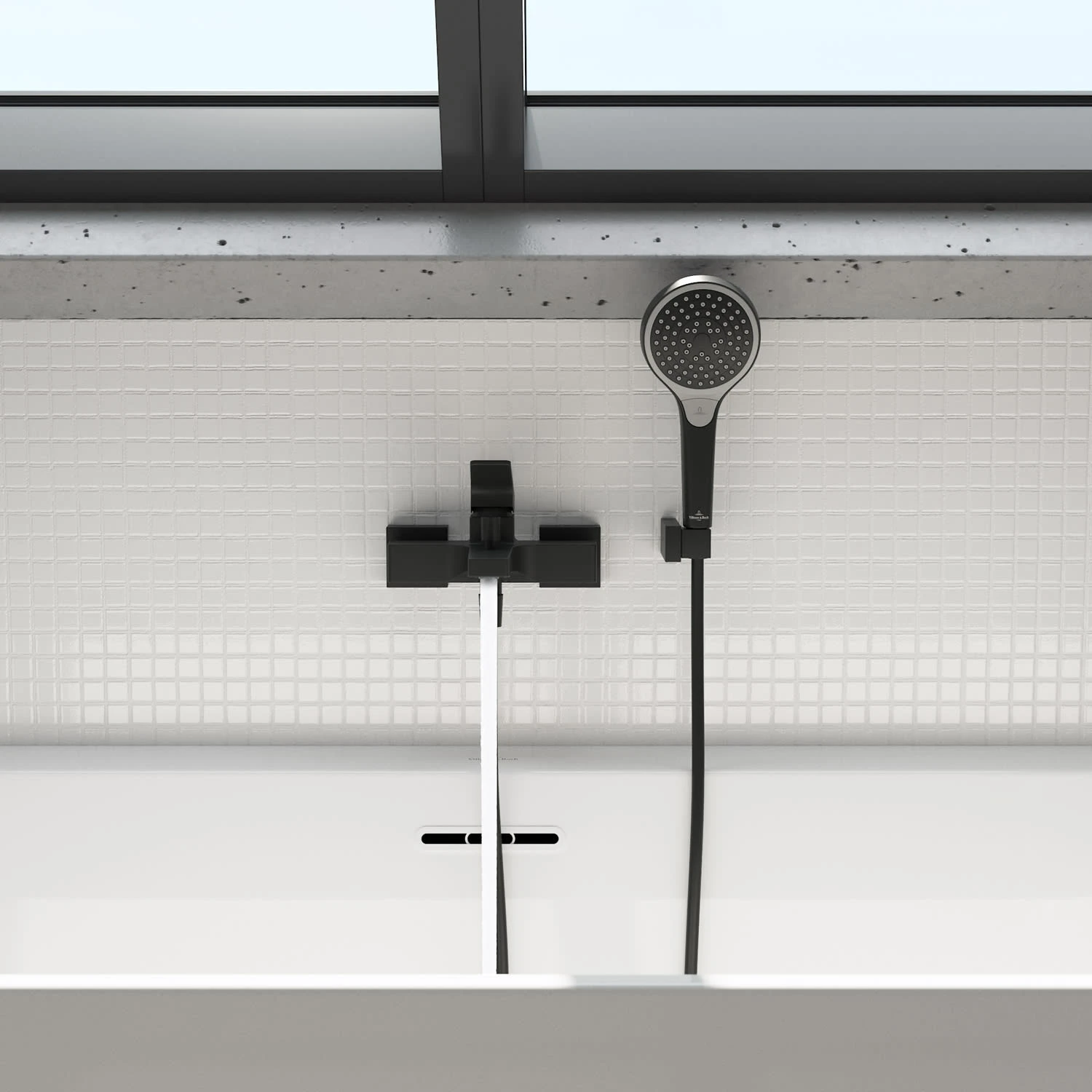 Wohltuendes Duscherlebnis mit der Villeroy & Boch Handbrause der Kollektion Taro. Mit ihrem flach-runden und zeitlosen Design fügt sie sich nahezu in alle Badezimmerstile ein. Die Brause verfügt über drei Strahlarten: Relax-, Massage- und Intensivstrahl, die für ein fantastisches Dusch- und Badeerlebnis sorgen. Der Relaxstrahl ist ein gleichmäßiger und angenehmer Strahl, während der Massagestrahl ein konzentrierter Strahl zur gezielten Muskelentspannung ist. Kraftvoll und mit hoher Reichweite punktet hingegen der Intensivstrahl. Zwischen den einzelnen Strahlen kann intuitiv per Knopfdruck gewechselt werden. Besonders praktisch: dank spezieller Düsen kann sich Kalk nur sehr schwer absetzen und Schmutz mit leichtem Fingerwisch entfernt werden. Eigenschaften: pflegeleichte Oberfläche dank des hochwertigen Finishes einfache Reinigung und Kalkentfernung mit einem Finger (EasyClean) gleichmäßiger, angenehmer Strahl mit hoher Deckkraft und breiter Sprühfläche für ein entspanntes Duscherlebnis (Relax) wohltuender und konzentrierter Strahl zur Muskelentspannung und Durchblutungsförderung (Massage) kraftvoller und reichhaltiger Strahl mit hoher Reichweite für ein intensives Duscherlebnis (Intense) einfacher Wechsel der verschiedenen Strahlarten durch Knopfdruck an der Handbrause (EasySwitch) flexible Installation mit Regenbrausearm oder Schlauch dank universellem G 1/2-Anschluss Lieferumfang: 1x Handbrause 1x Montageanleitung